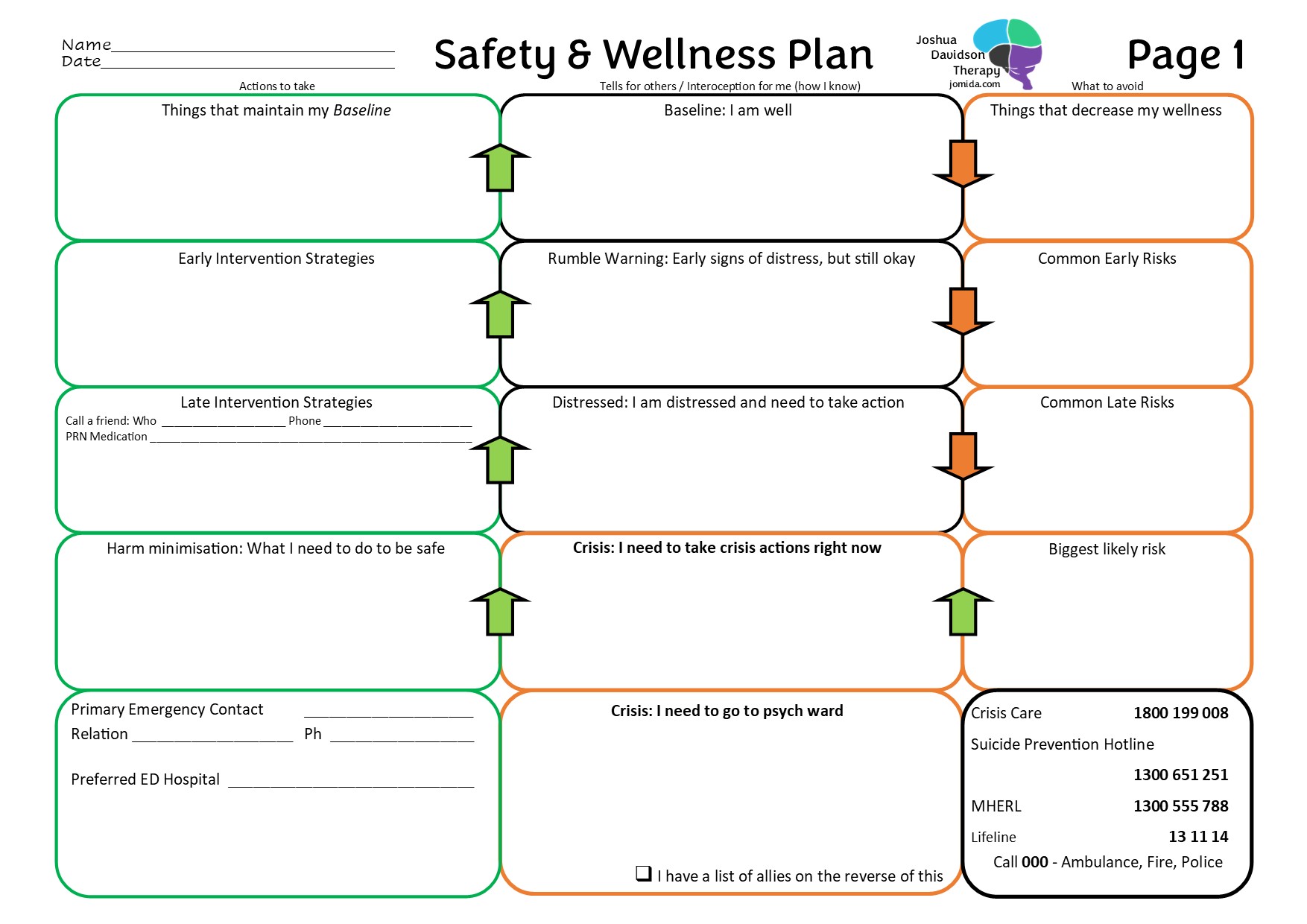 - Look at the Safety and Wellness Plan. Fill it in.