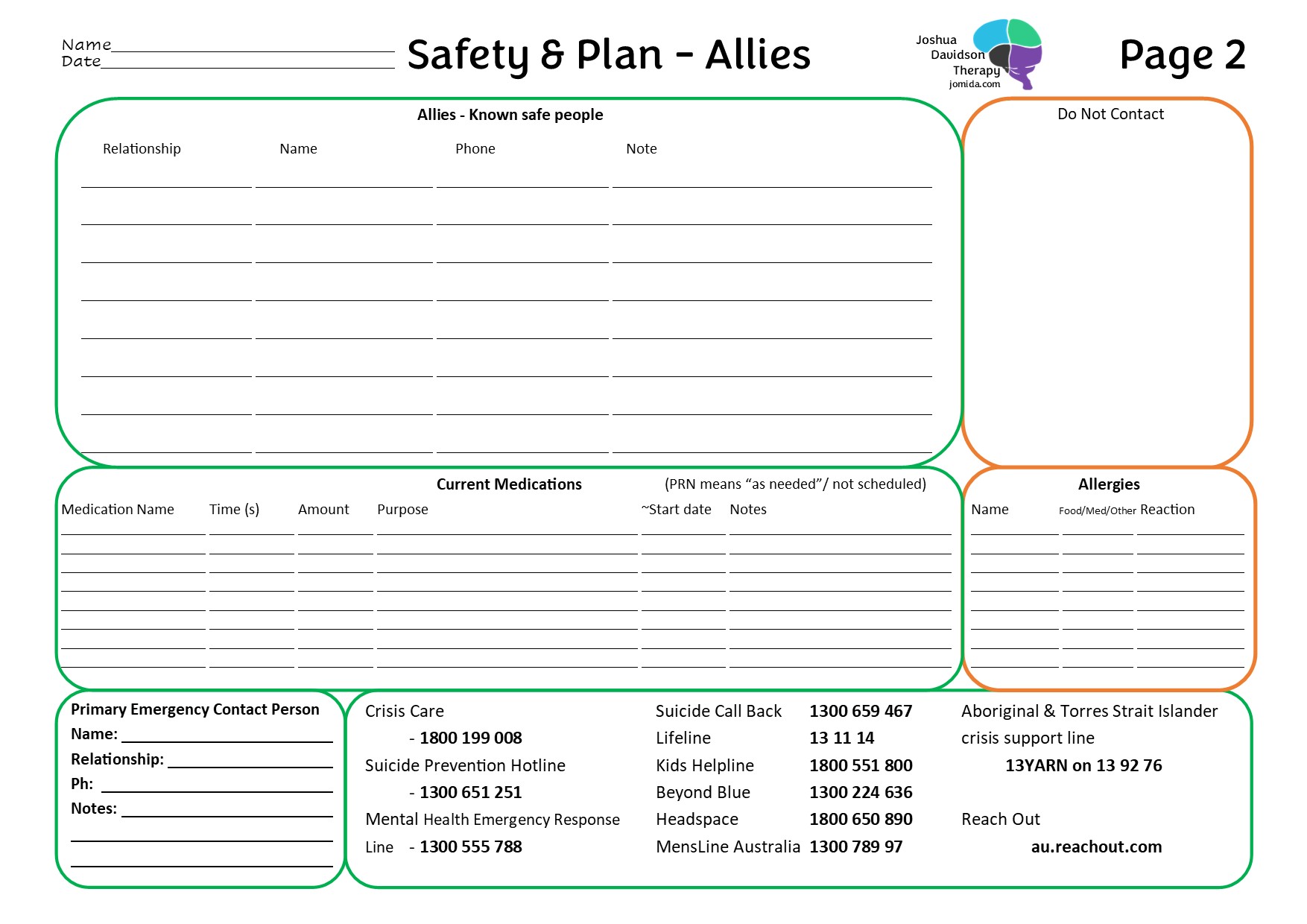 - “Note” information can include availability, or for what you find them good at doing for you when you are in crisis.